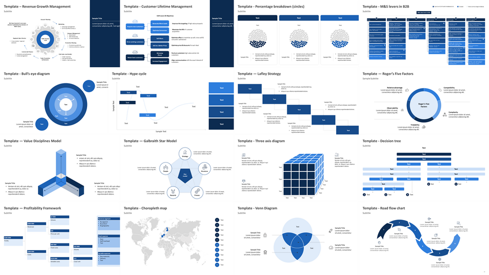 - Rich Array of Frameworks: Whether it's dissecting competitive landscapes with Porter’s Five Forces or aligning your team around the McKinsey 7-S, this pack arms you with a diverse toolkit of frameworks to articulate sophisticated strategies effectively.